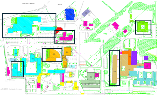 Cartographie du site CNRS et localisation des bâtiments retenus pour l’analyse